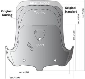 Touring windshield dimensions (H x W) 48.5 x 45.0 cm.